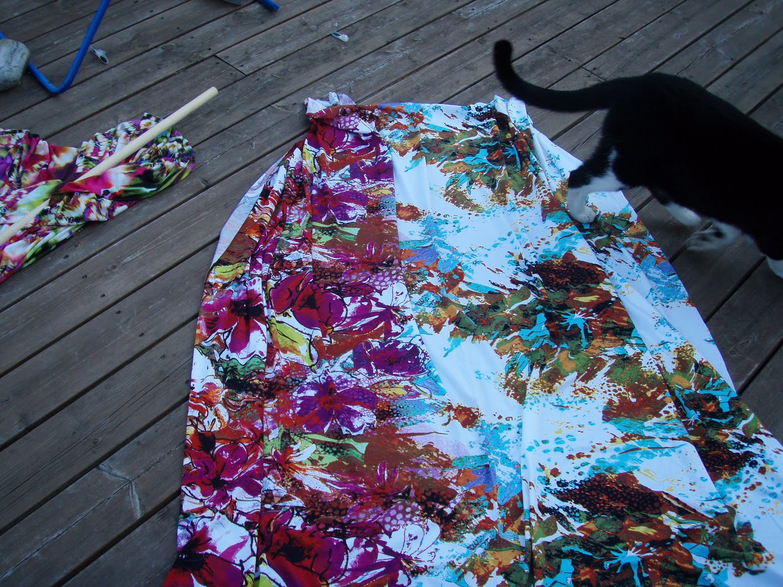 Sini Flora" også 100% bomull, men noe kraftigere i veven fast, men med antydning til strech sideveis. Hvilket kan gjøre den egnelig til en noe ettersittende skjorte, kjole eller endatil en tøff jakke om man forer den. Disse er jo også begge fine som interiør-stoffer.